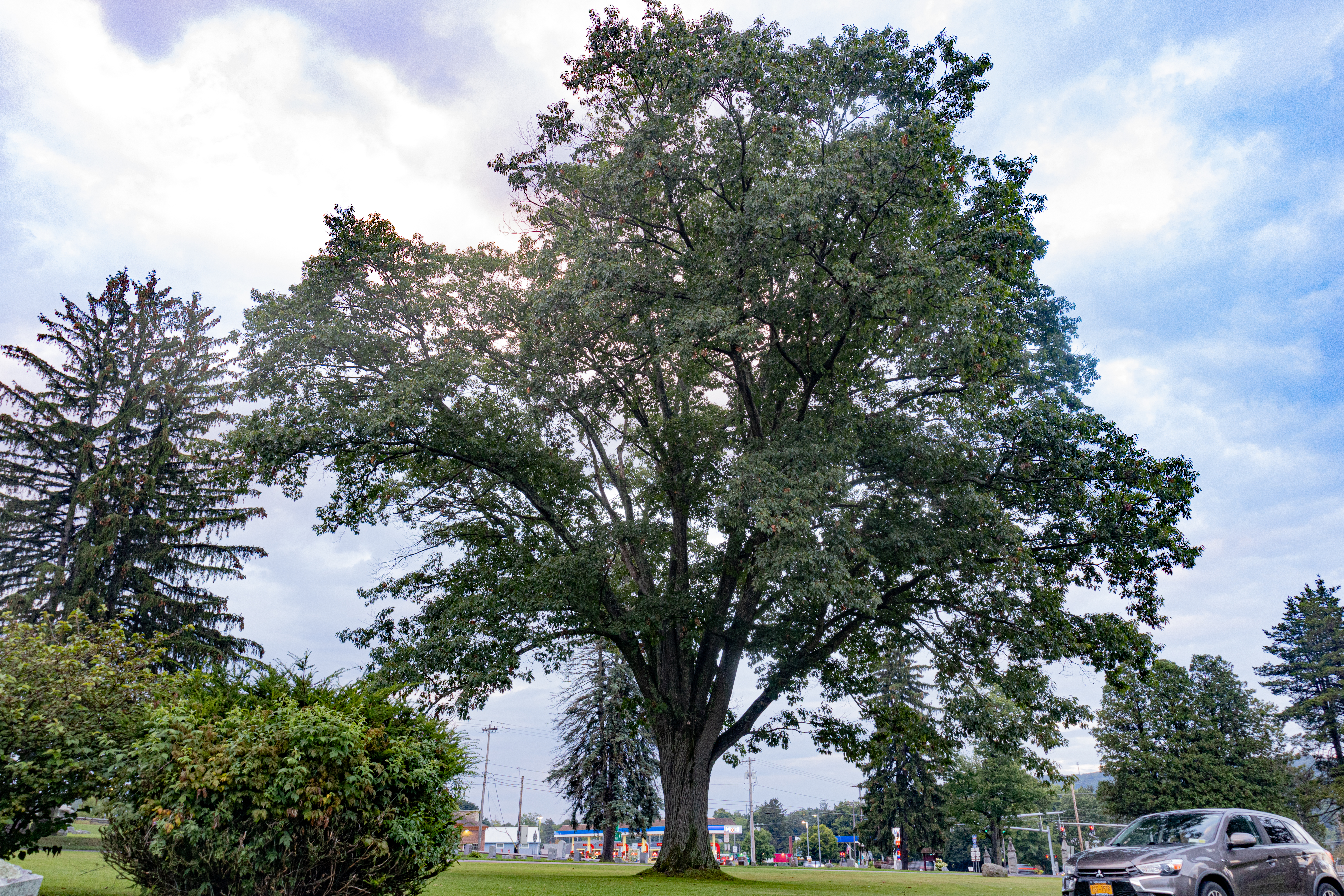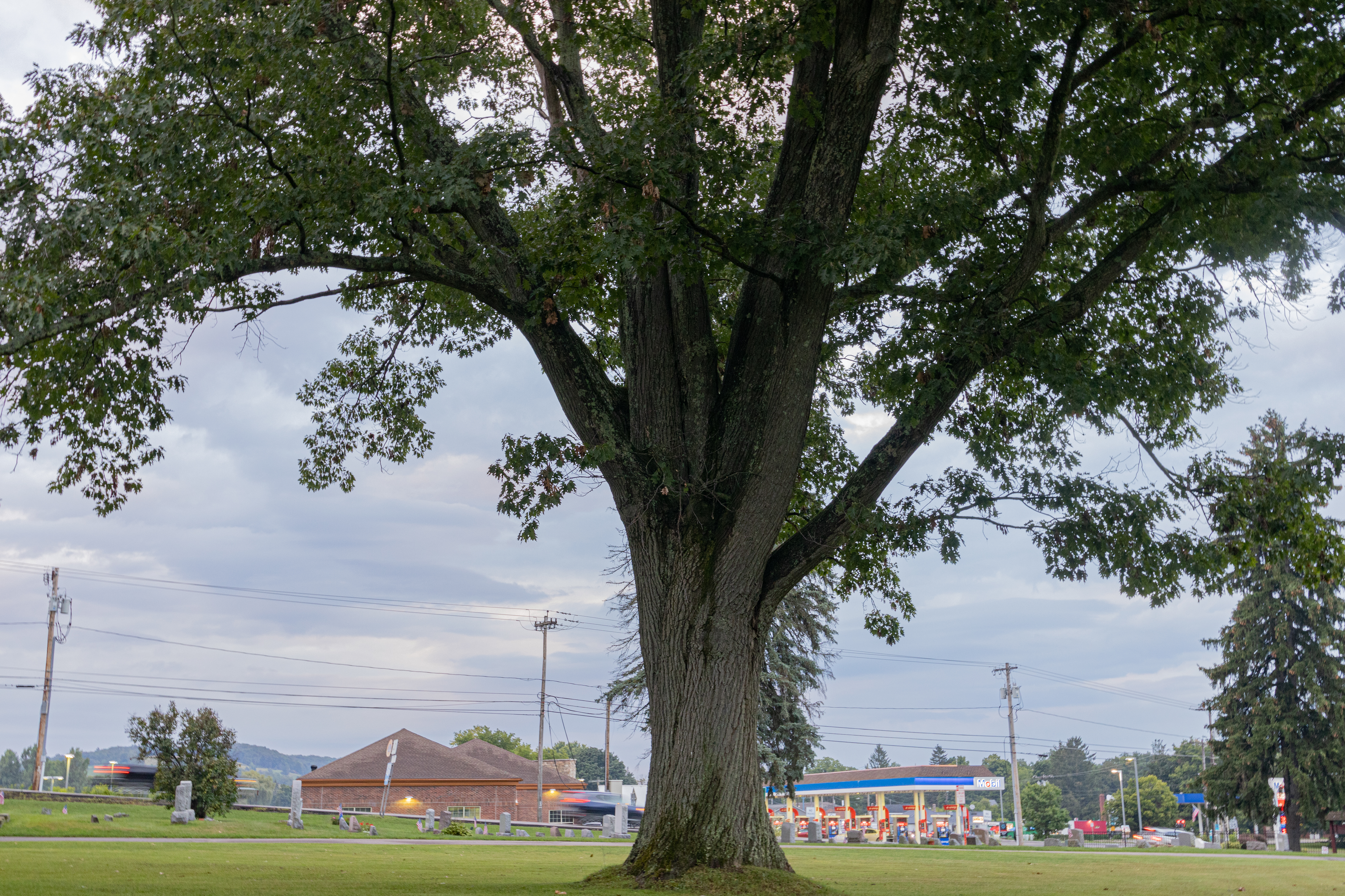 This Red Oak is located in Glenwood Cemetery, in Homer, Ny. It has a grand crown that makes the tree stand out over all of the others in the cemetery. The cemetery was established in 1862 at which time the grounds were laid out and this tree was likely planted which would make it over 160 years old.